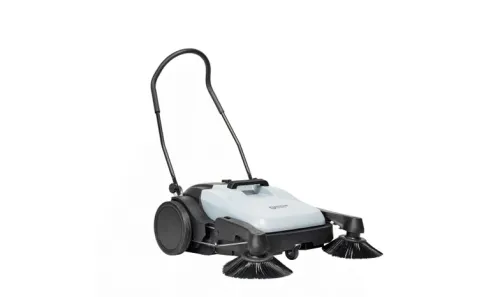 Neem contact op voor verwachte levertijd. De PS480 is de eerste handmatige achterloop veegmachine van Nilfisk Viper en biedt een robuuste en zeer productieve reinigingsoplossing die eenvoudig in gebruik is tegen een aantrekkelijke prijs. Het compacte ontwerp voegt kosteneffectiviteit toe aan de welbekende Nilfisk Viper kwaliteit. De veegmachine is gebouwd op een stevig frame en de borstels worden aangedreven met behulp van een riem of een eenvoudige overbrenging aan beide wielen. Dot zorgt voor een praktisch onderhoudsvrije machine, mede door het ontbreken van een motor, batterij of netsnoer. U kunt zich richten op de schoonmaakwerkzaamheden, de veegmachine biedt een grote capaciteit met de 38 liter vuilcontainer. Al duwend vloeren vegen zowel binnen als buiten, deze Nilfisk Viper veegmachine verwijdert papier, bladeren, doppen, kurken, sigarettenpeuken en zelfs kleine schroeven en spijkers. De eenvoud maakt deze Nilfisk Viper veegmachine zeer betrouwbaar. Lichtgewicht, eenvoudig te manoeuvreren en met een werkbreedte van 72 cm biedt de Nilfisk Viper PS 480 veegmachine snelle en productieve reiniging van winkels, benzinestations, scholen, kleine fabrieken, magazijnen, stations, binnenplaatsen en voetpaden.